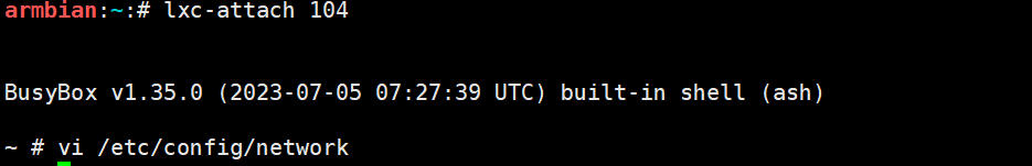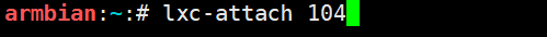 输入 lxc-attach 104 (104是我的容器id,请填自己的id)